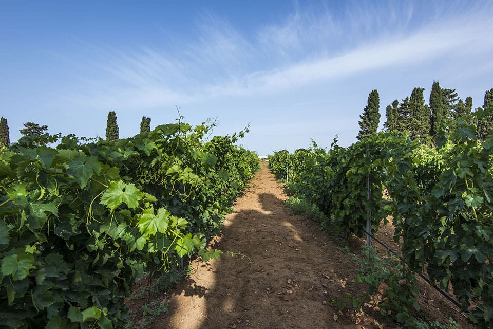 I vigneti della tenuta, coltivati su suoli ricchi di sabbia, calcare e silice, ospitano principalmente vitigni autoctoni siciliani come il Nero d’Avola e il Frappato, che danno vita al prestigioso Cerasuolo di Vittoria, l’unica DOCG della Sicilia.