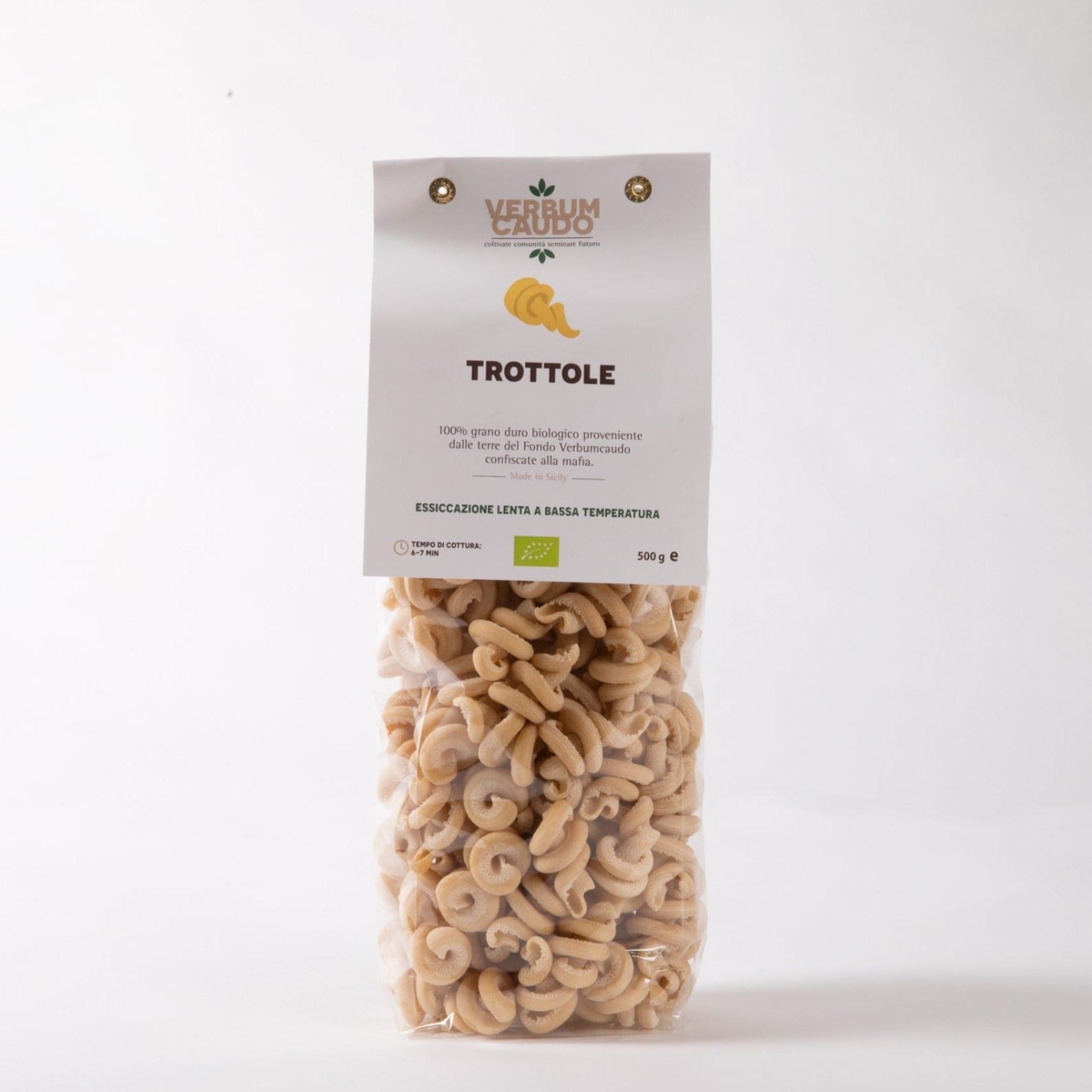 Le Trottole di Verbumcaudo sono realizzate con il grano duro coltivato sulle Madonie, nel cuore della Sicilia, con metodo biologico e senza concimi o diserbanti chimici.