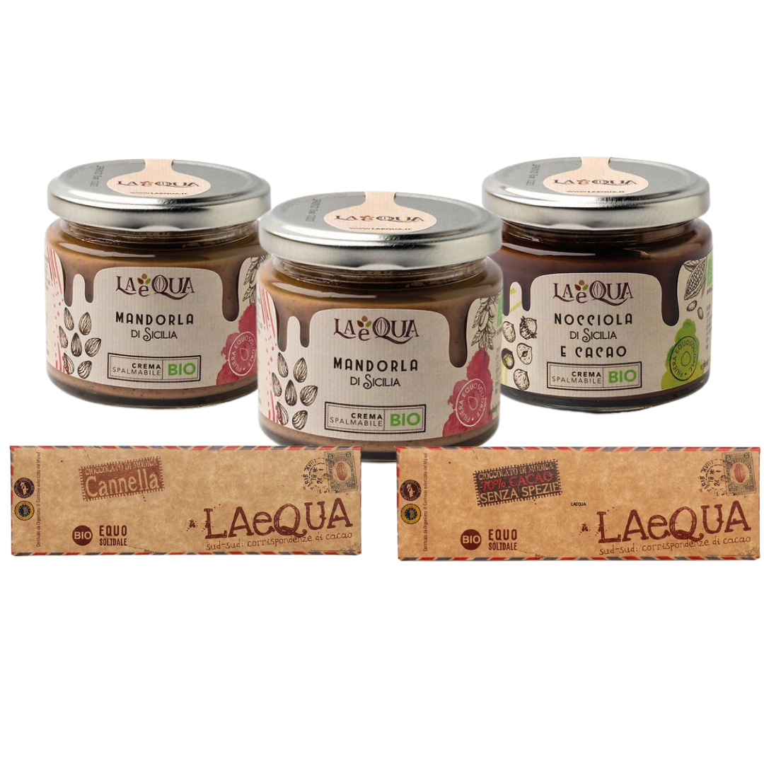 Direttamente da Modica, un pacco goloso e solidale firmato LA eQUA: cioccolato e creme spalmabili biologiche che raccontano una missione fatta di inclusione, territorio e bontà vera.
