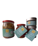 Cinque specialità artigianali pronte da servire: sott’oli, creme e sfiziosità realizzate nel segno dell’economia circolare e dell’inclusione sociale. Gusto autentico e impegno concreto in ogni vasetto.
