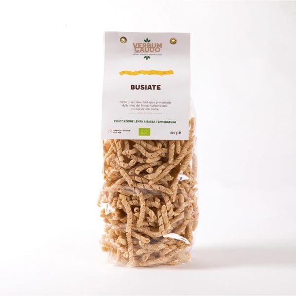 Le Busiate di Verbumcaudo sono realizzate con il grano duro coltivato sulle Madonie, nel cuore della Sicilia, con metodo biologico e senza concimi o diserbanti chimici.