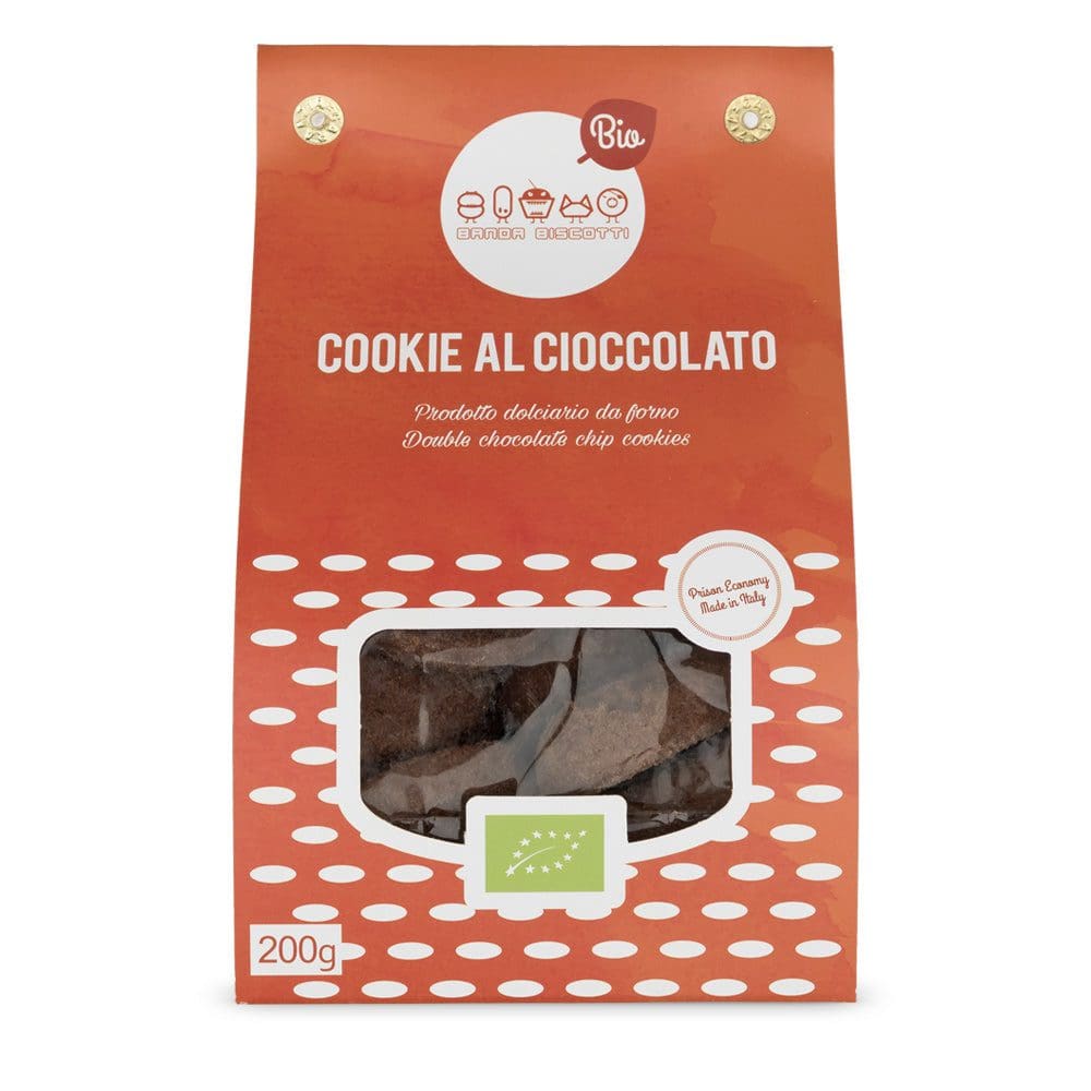 I Cookies al cioccolato Bio di Banda Biscotti sono gustosi biscotti al cacao arricchiti con gocce di cioccolato fondente.