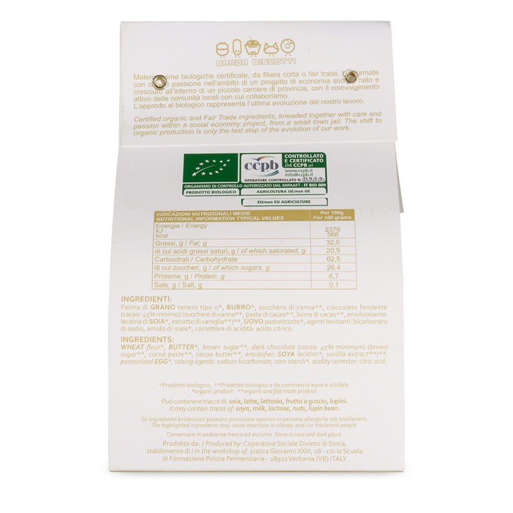 I Cookies al cioccolato non contengono olio di palma, sono uno snack adatto per tutti i momenti della giornata. Frutto del lavoro dei detenuti in carcere, tutti prodotti Banda Biscotti aiutano il reinserimento e combattono la recidiva!