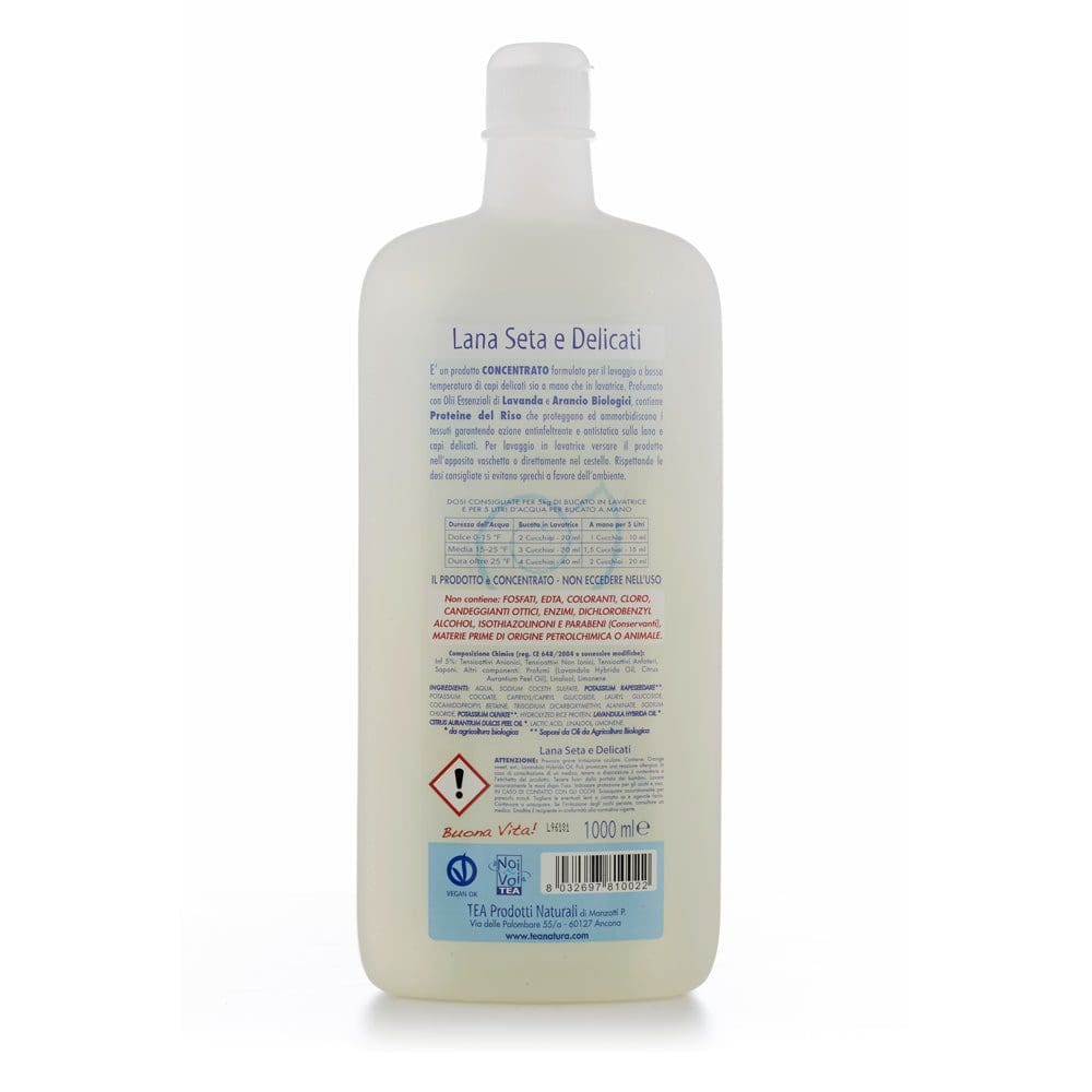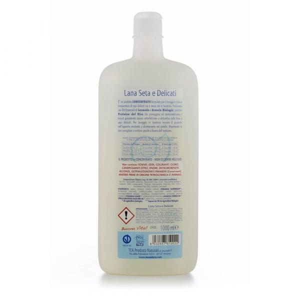 Il detersivo ecologico Tea Lana Seta e Delicati è un prodotto ad alta concentrazione, ideale per il lavaggio a bassa temperatura di capi delicati. Il detersivo è arricchito da un gradevole profumo di lavanda e arancio biologici.