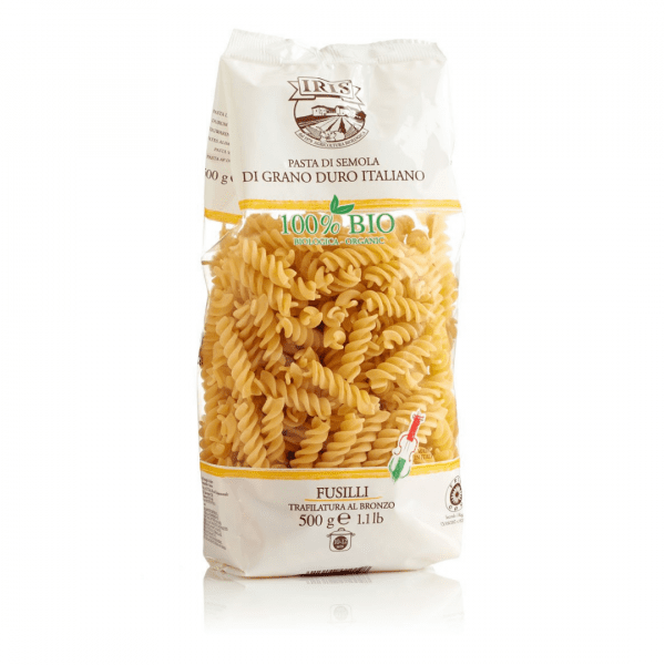 I fusilli di semola IRIS BIO sono trafilati al bronzo, questo permette di rendere la pasta più ruvida e porosa, perfetta per assorbire i sughi e valorizzarne il sapore.