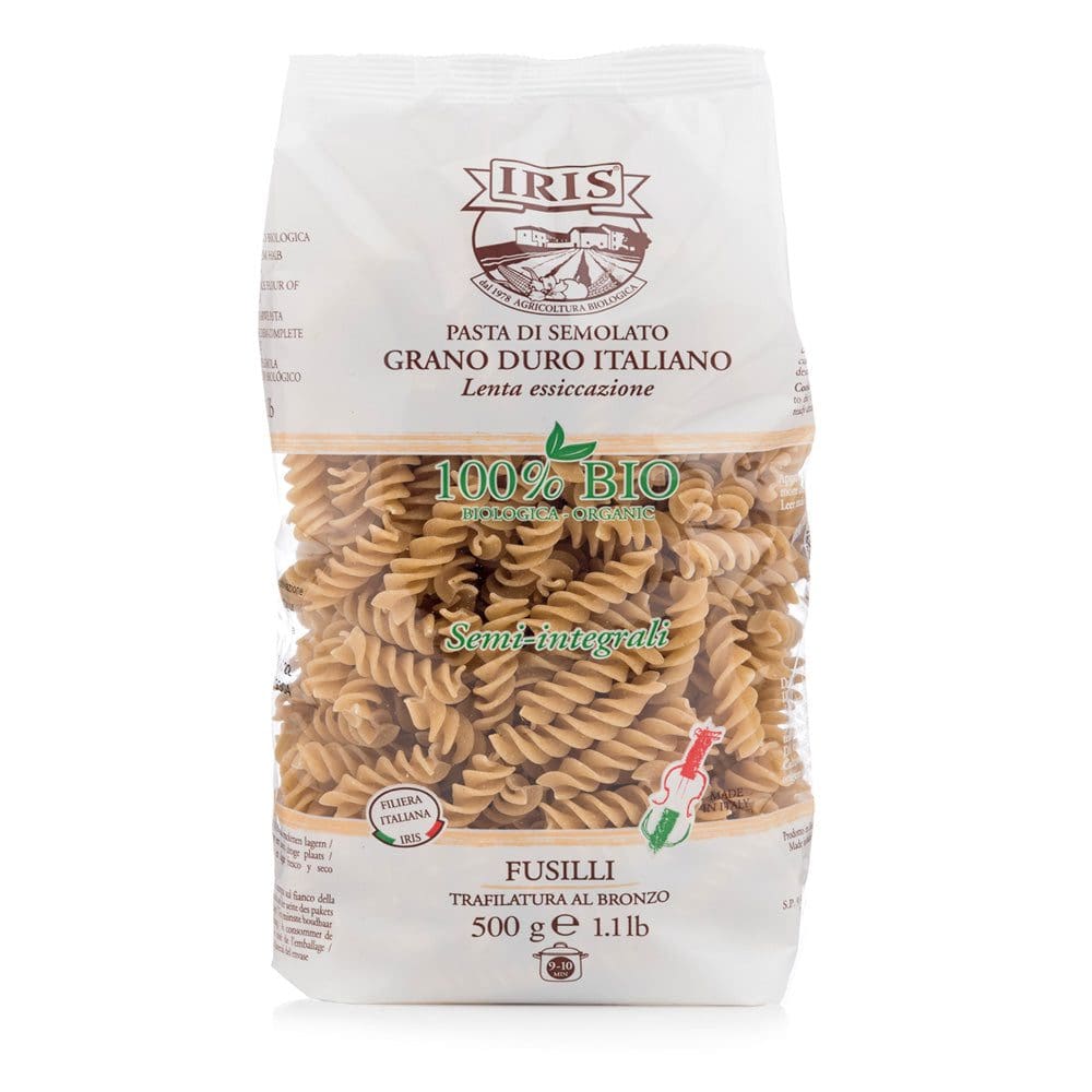 I Fusilli Semi-integrali Bio Iris Bio sono realizzati con una miscela di semola di grano duro tradizionale e integrale, ottenuta dalla selezione dei migliori raccolti, per garantire tutte le caratteristiche nutrizionali e organolettiche del grano appena raccolto.
