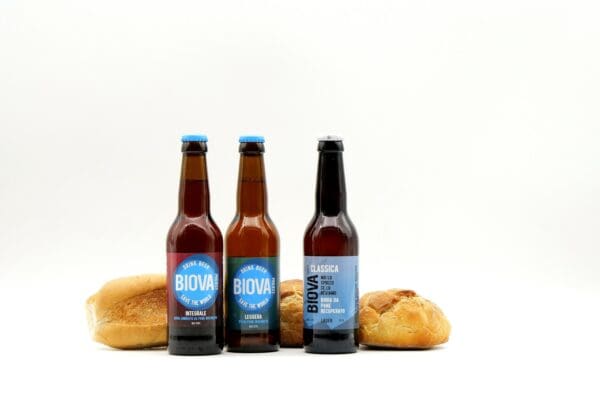 La birra di pane Biova è prodotta da pane recuperato, che altrimenti diventerebbe un rifiuto, prodotto dai panifici piemontesi che lavorano a filiera corta e con farine biologiche.