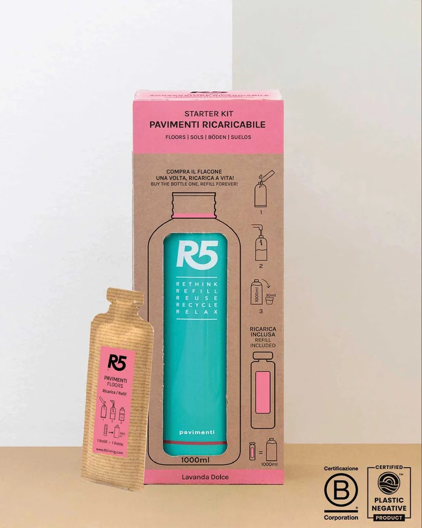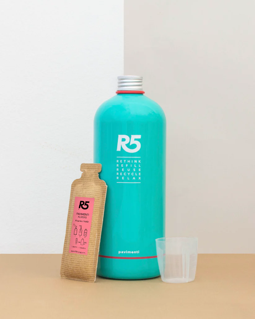 R5 Pavimenti è vegan friendly, non testato sugli animali. I tensioattivi sono di origine vegetale, derivanti da economia circolare dagli scarti della lavorazione del mais, della canna da zucchero e della barbabietola. I nostri prodotti Kit Spray e Refill sono tutti MADE IN ITALY.