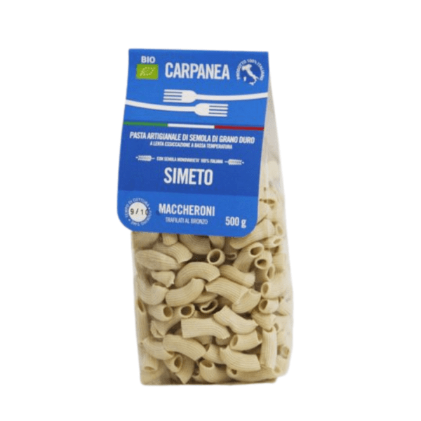 I maccheroni di semola Simeto sono realizzati con una moderna variante di grano duro che mantiene comunque una quantità di glutine sostanzialmente pari alle antiche varietà, garantendo un sapore autentico e una consistenza perfetta.