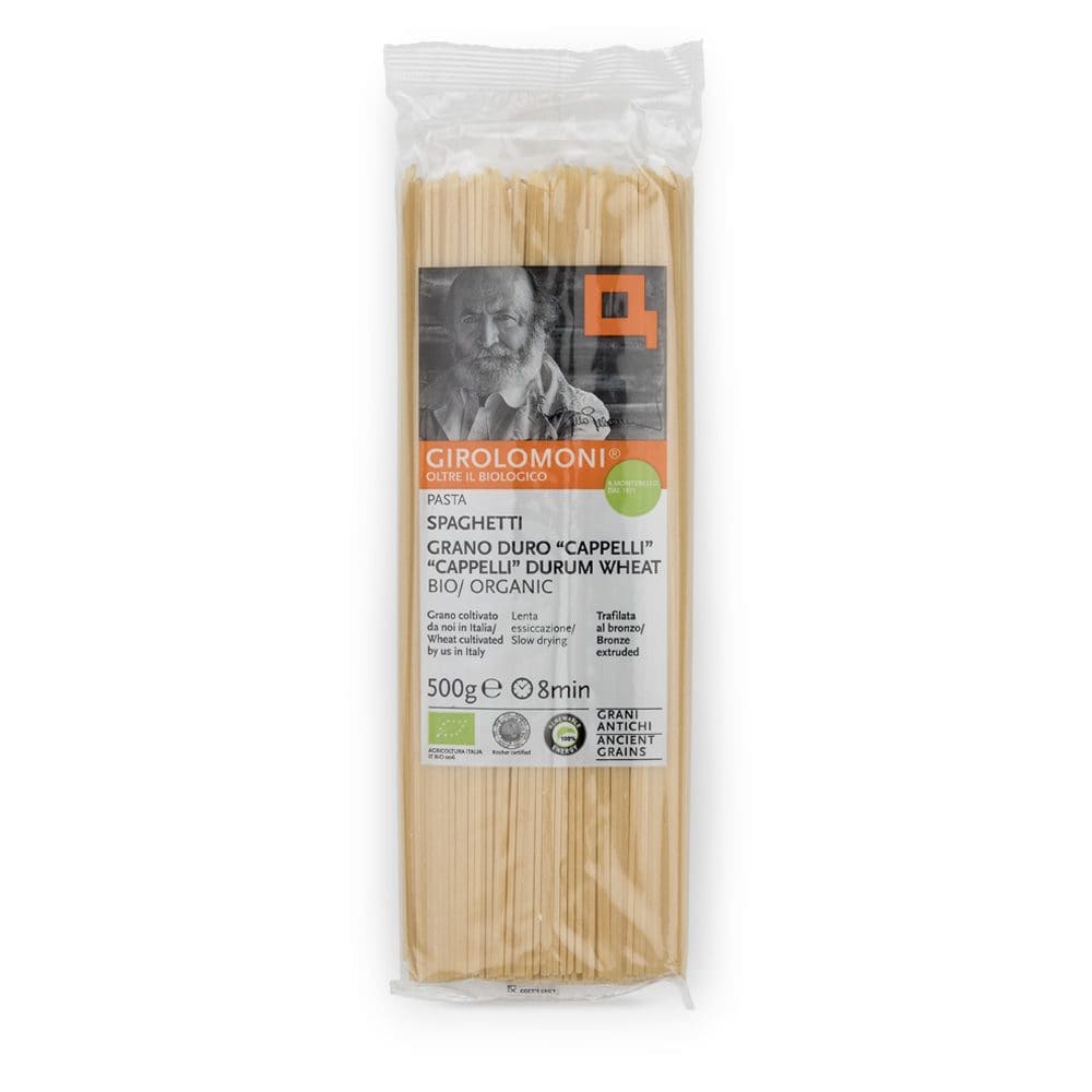Gli spaghetti Girolomoni® sono realizzati utilizzando solo semola di grano duro varietà Cappelli coltivata esclusivamente in Italia con metodo Biologico.