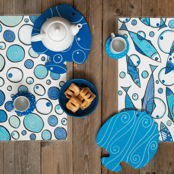 Ideale per la colazione, ma così versatile da poter essere usate anche per pasti informali tra amici, in sostituzione delle classiche tovaglie, ecco la tovaglietta “Le Acciughe”.
